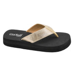 Introducing the Corkys Overboard Flip Flops, designed with a shimmering metallic finish and a focus on comfort. These flip flops are perfect for adding a touch of glam to any casual outfit while ensuring all-day wearability. Their durable construction and cushioned footbed provide exceptional comfort for various occasions.