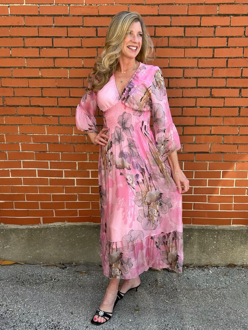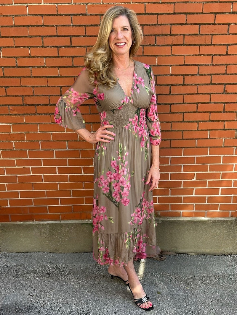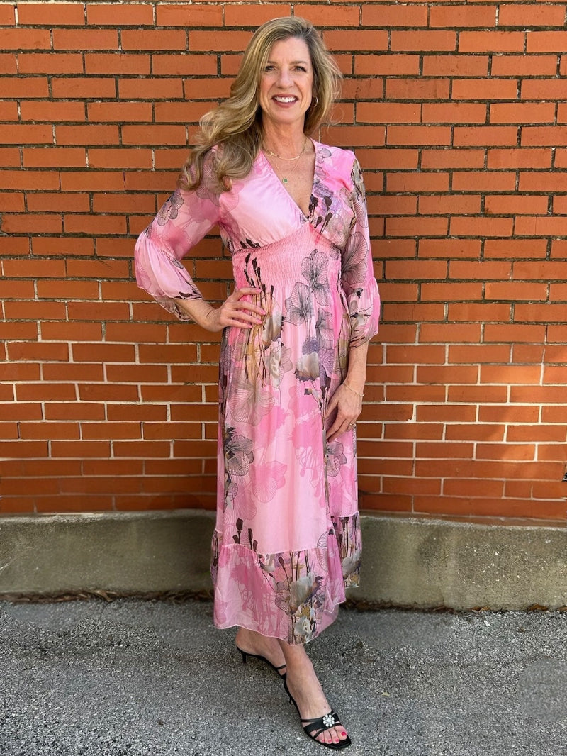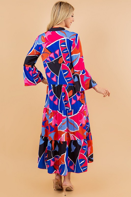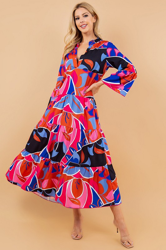 *FINAL SALE* Puff Sleeve Print Tiered Midi Dress