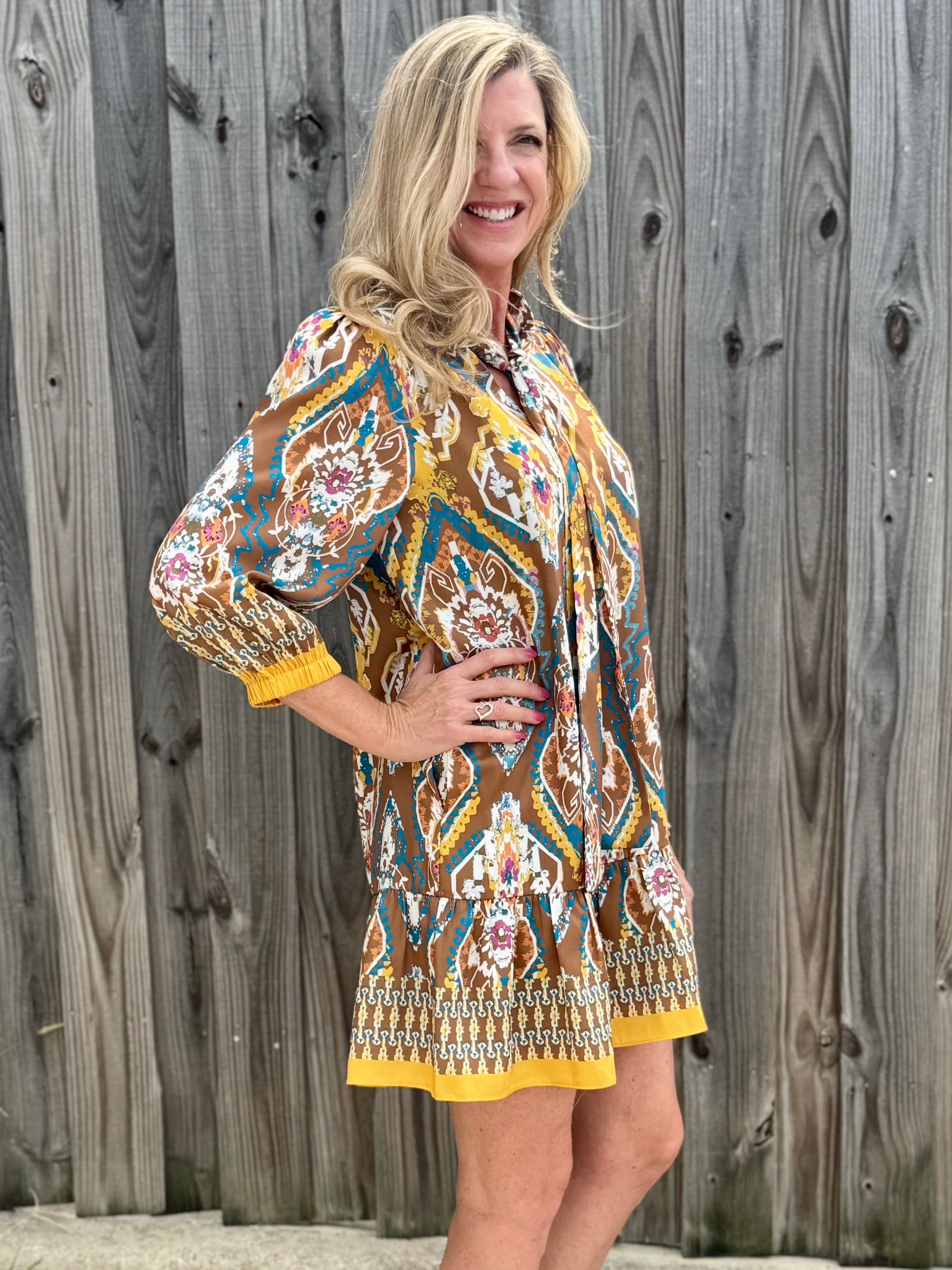 *FINAL SALE* Printed Ruffle Sleeve Shirt Dress