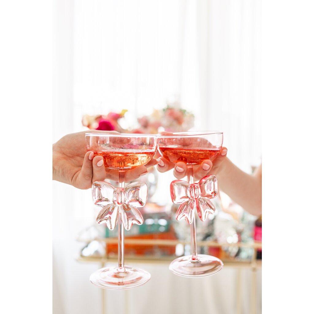 The Bow & Bubbly Coupe and Wine Glass by Rock Paper Scissors combines elegance with whimsical charm, featuring distinctive bow-shaped stems that add a touch of femininity to any celebration. These stunning crystal clear glasses showcase a sophisticated coupe design perfect for champagne, cocktails, or wine service. The unique bow detail integrated into each stem creates an eye-catching conversation piece that elevates special occasions from bridal showers and bachelorette parties to elegant dinner parties and romantic evenings.