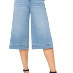 Our Liverpool Denim Yacht Pants are the epitome of laid-back coastal chic. Crafted in a soft, light-wash denim, they feature a mid-rise waist and a wide-leg silhouette that falls to a cropped, culotte-style length. The relaxed fit offers both comfort and effortless style, perfect for seaside strolls or casual brunch dates. Classic five-pocket styling and subtle fading add a timeless denim touch, while the structured hem keeps the look clean and polished. Pair them with a tucked-in tee or a breezy blouse for an easy, nautical-inspired outfit.