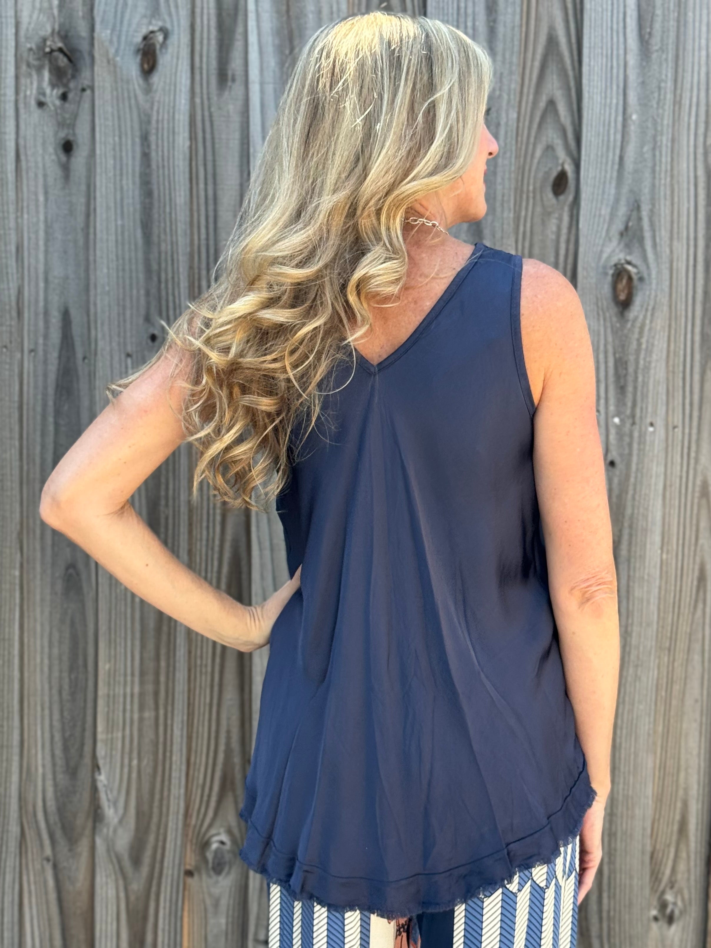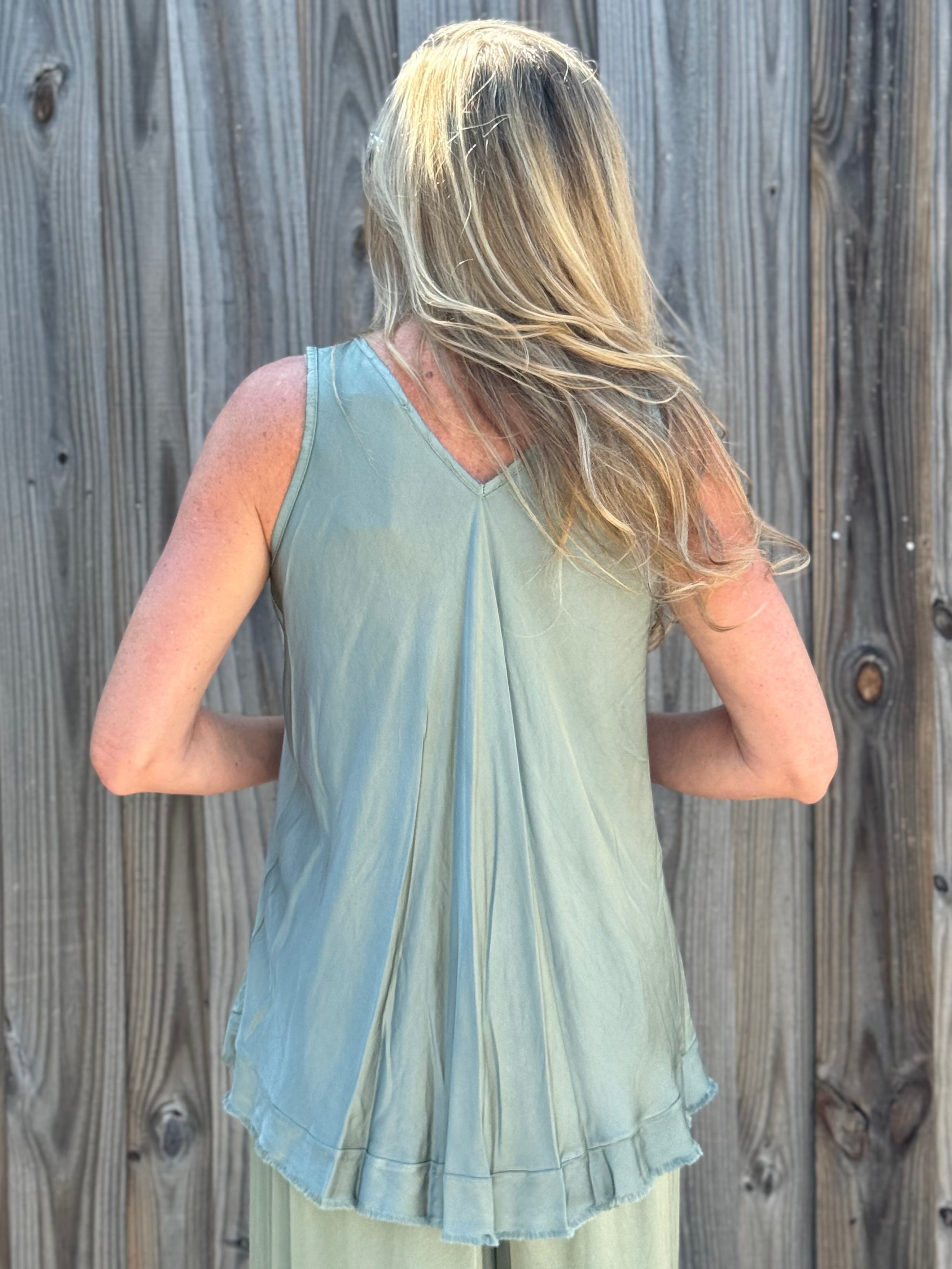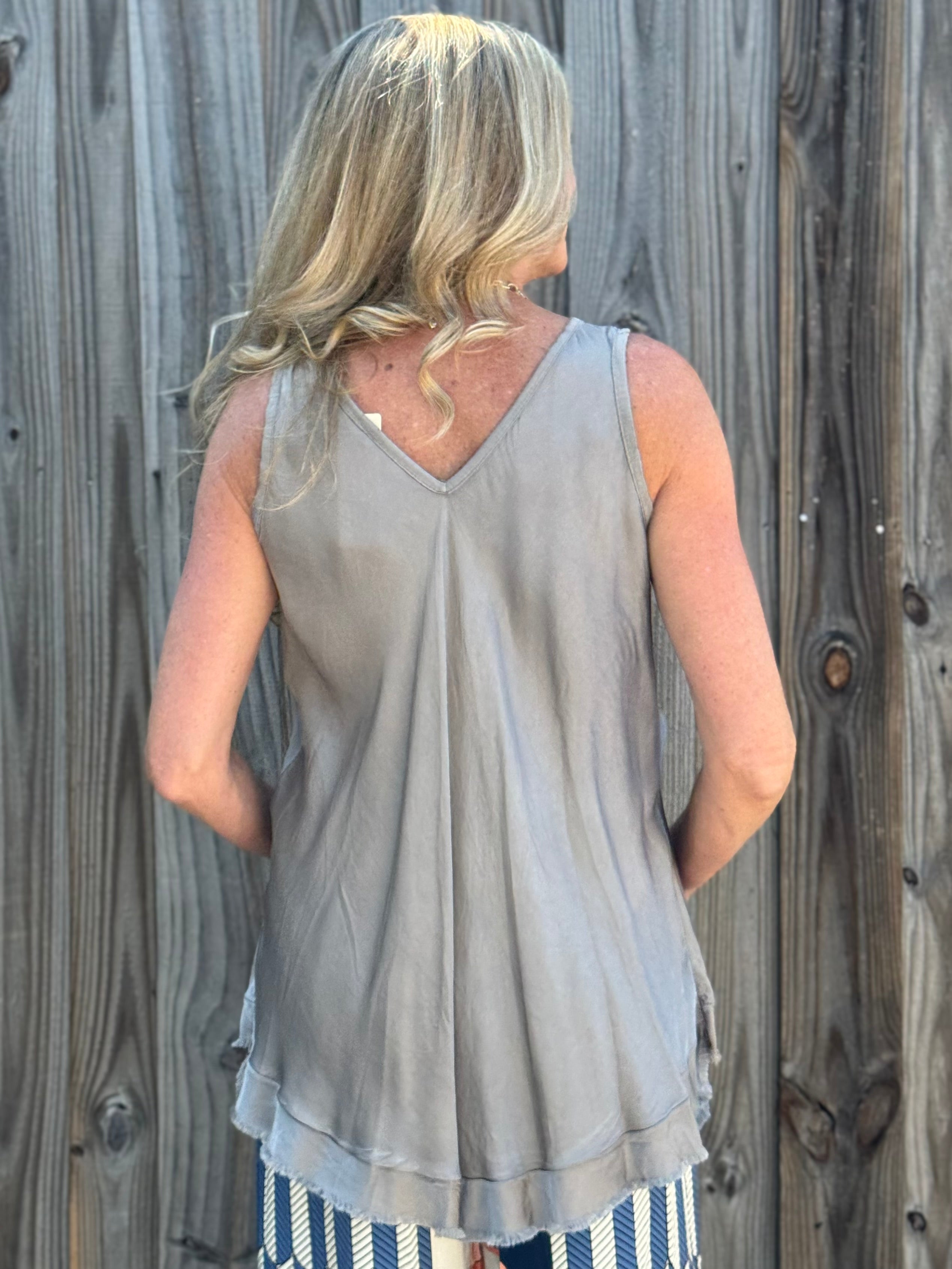 - V-Neck front and back tank top.