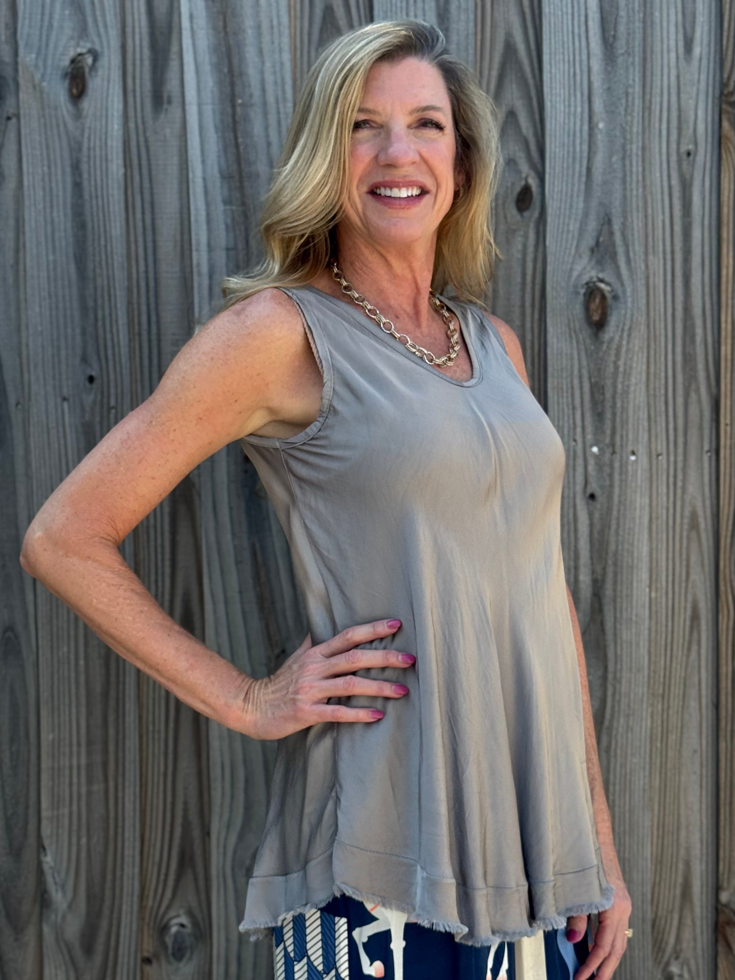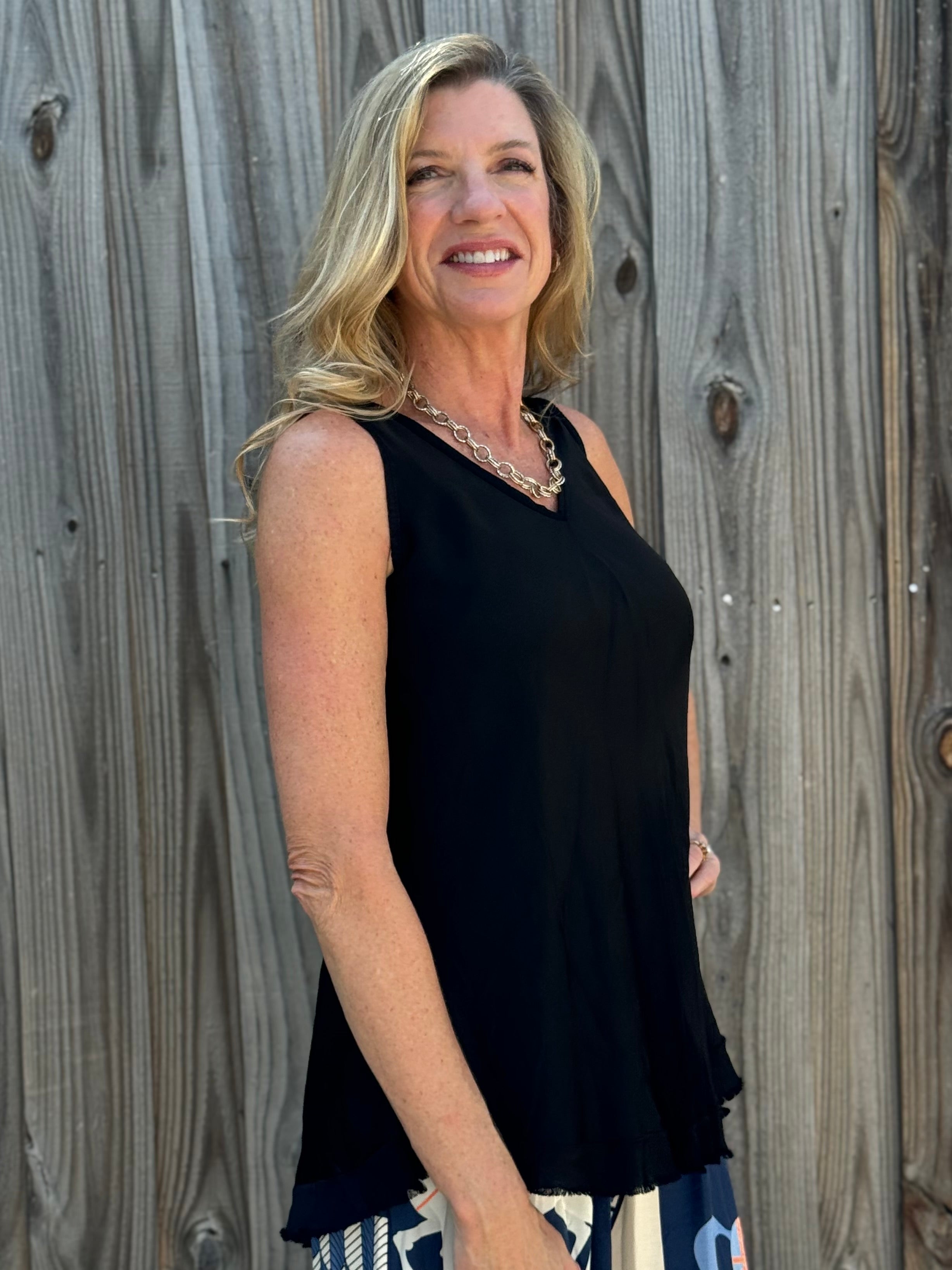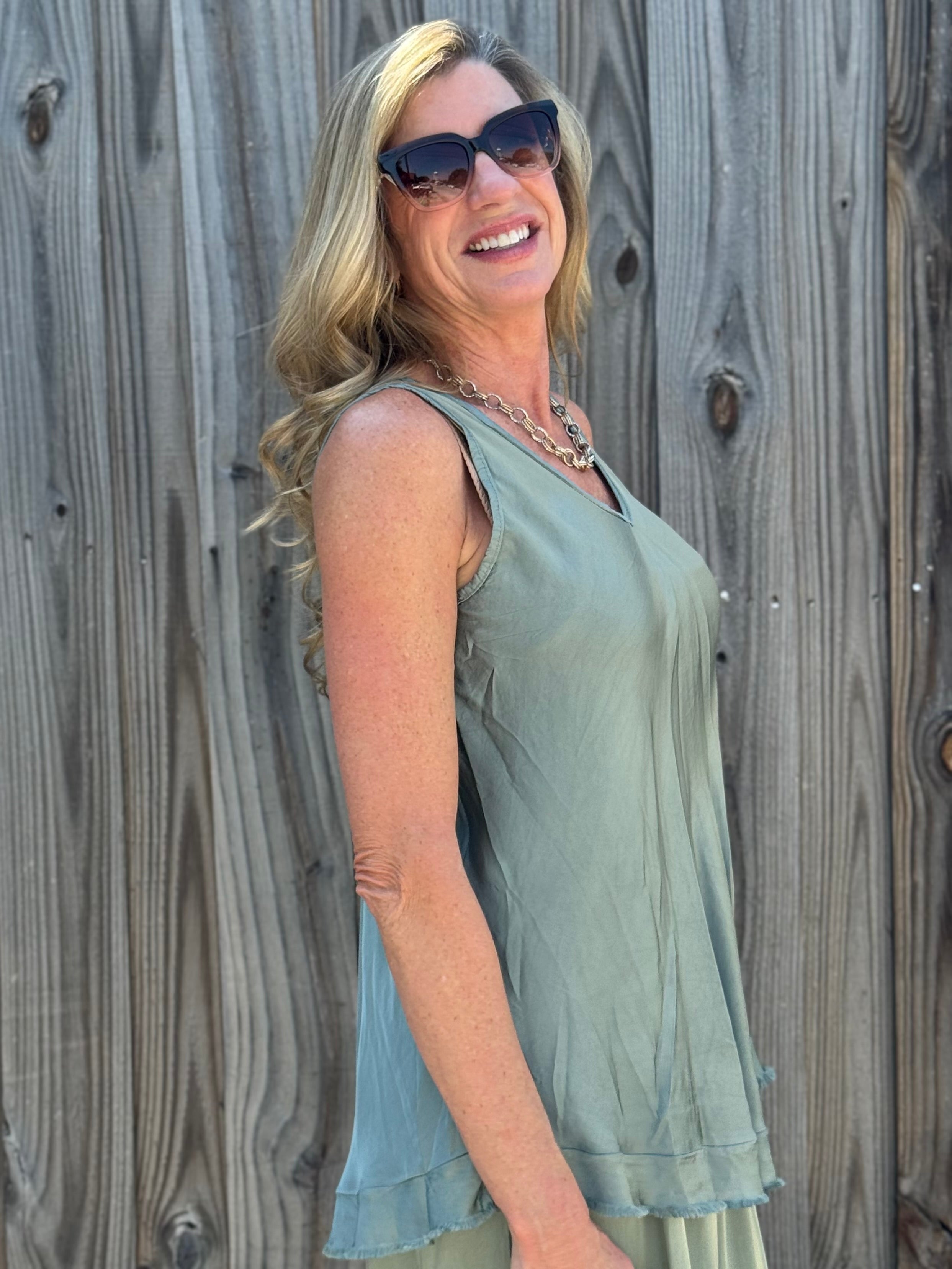 - V-Neck front and back tank top.