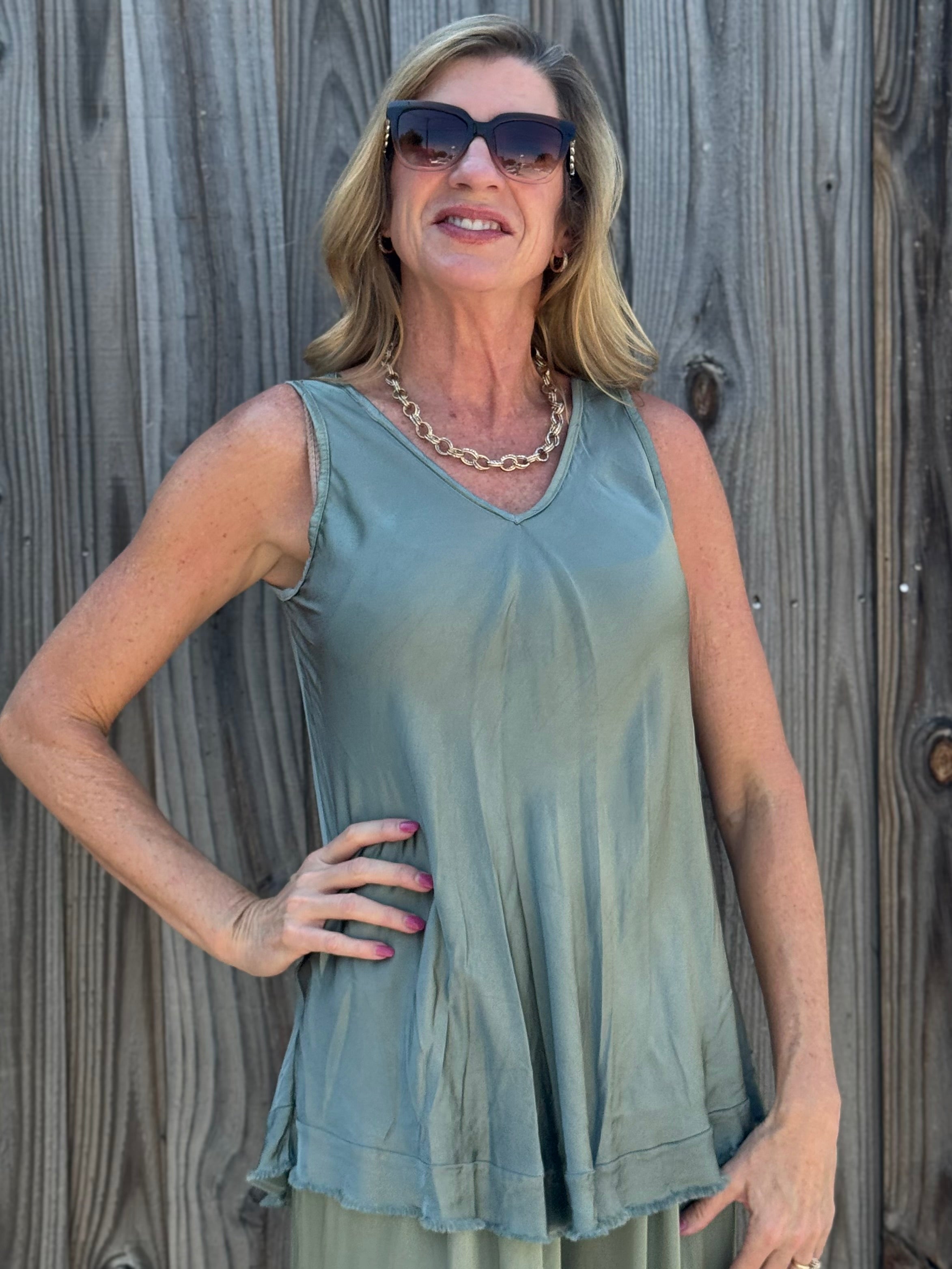 Satin V-Neck Tank Top