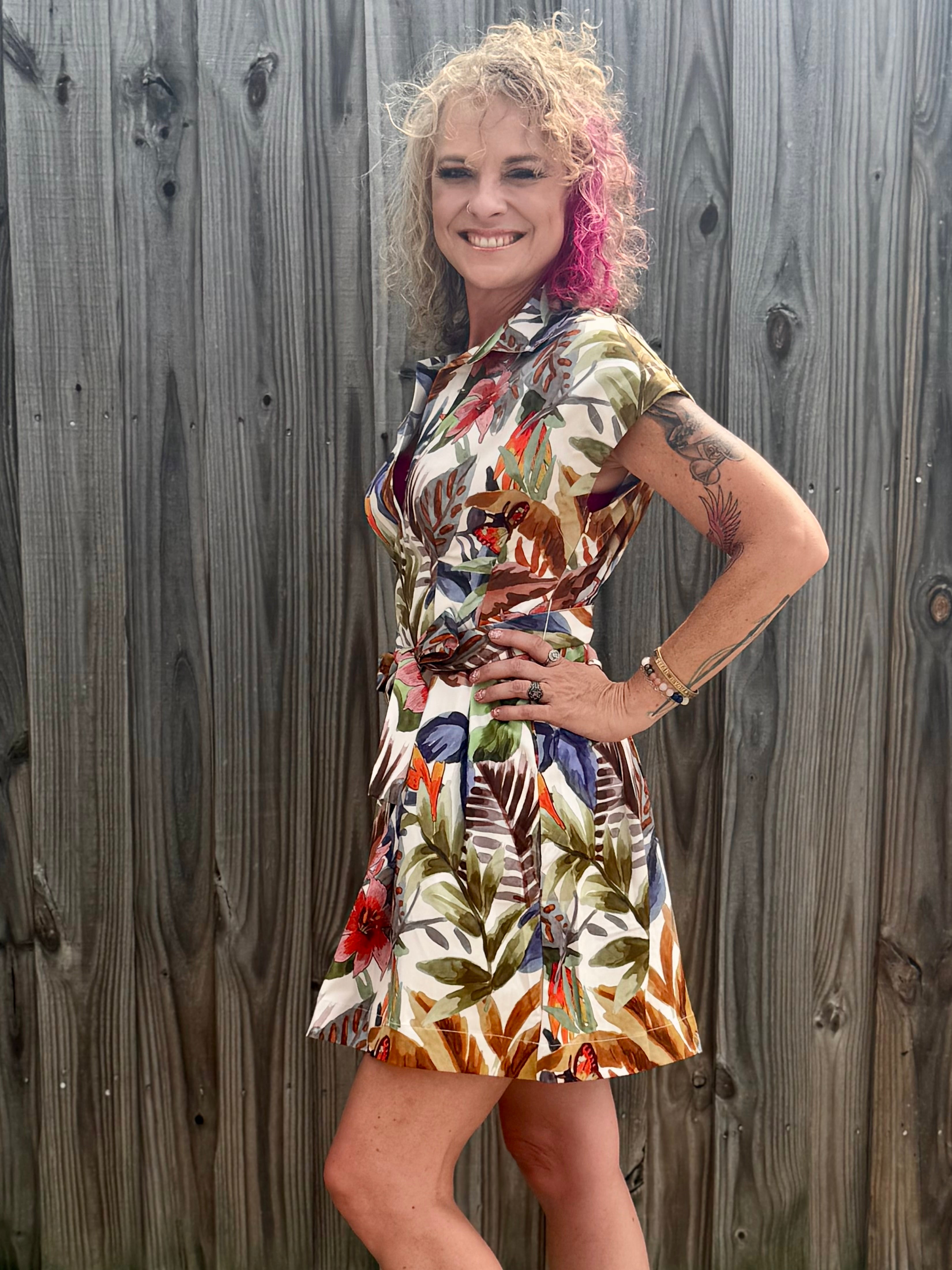 *FINAL SALE* Printed Ruffle Sleeve Shirt Dress