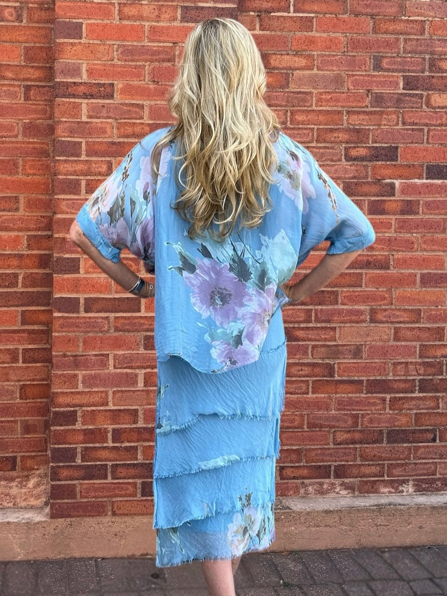 Floral Short Sleeve Silk Ruffle Dress