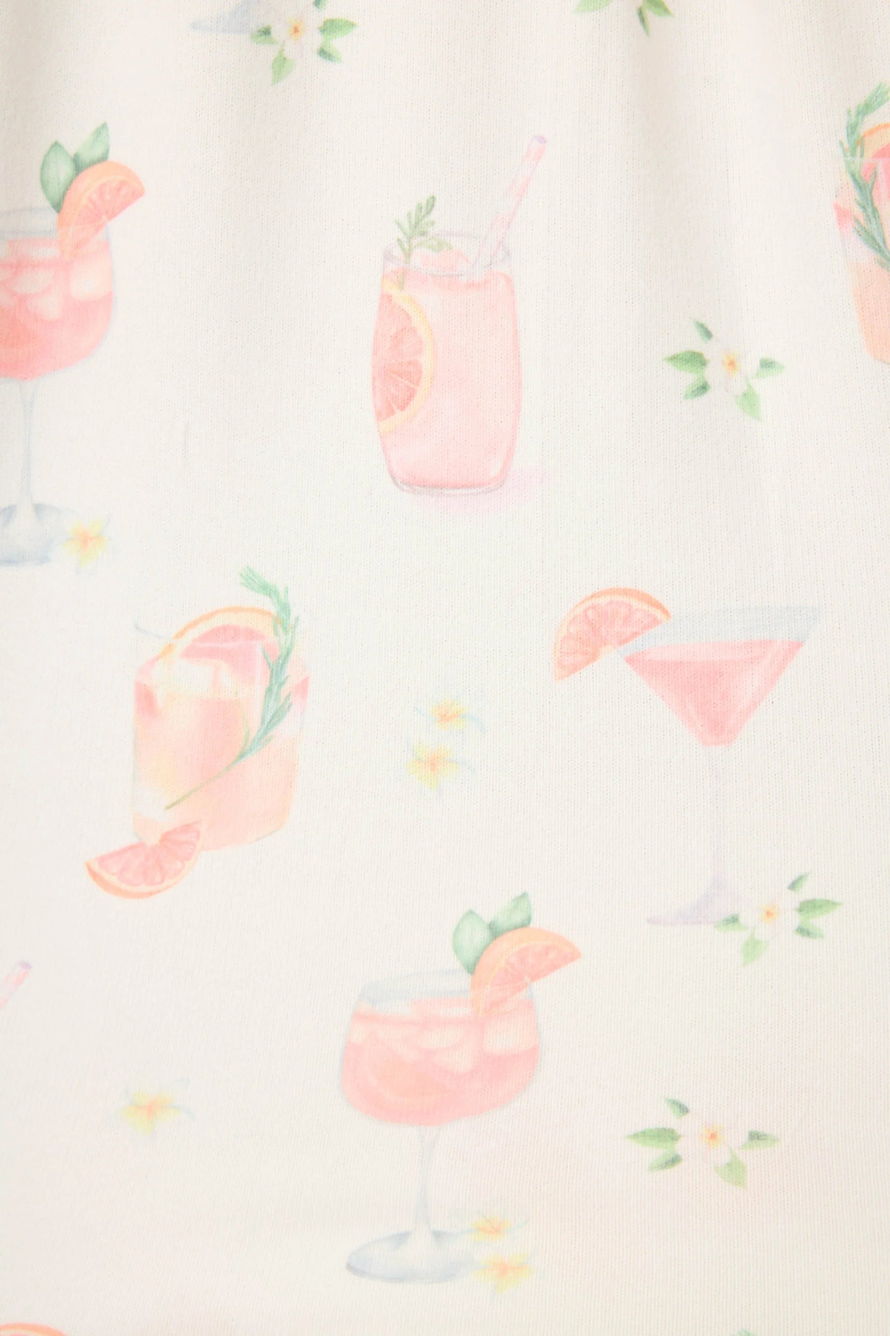 A nightcap, but make it a set. This ivory three-piece pajama set is crafted in mid butter jersey with a smooth, stretchy feel and printed with playful paloma cocktails throughout. The short sleeve button-front top pairs with relaxed lounge shorts, while the matching eye mask completes the look with a coordinated finish.