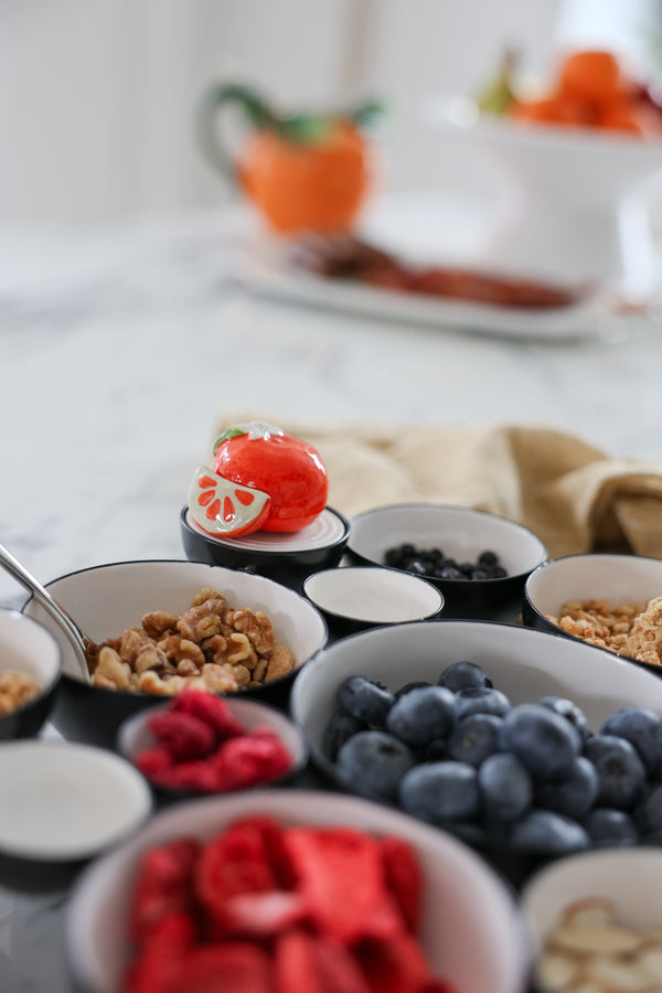The 'Cutie Pie' mini by Nora Fleming is a delightful addition to any table setting, bringing a touch of citrus-themed fun to your decor. Perfect for year-round use, this mini adds a zesty and blooming charm that will brighten up any occasion.