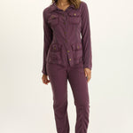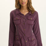 The XCVI Twill Safari Jacket, crafted in luxurious Taissa Twill, is a perfect addition to your fall wardrobe. This stylish utility jacket features a classic button-up front, a traditional collar, and four flap pockets for added functionality.