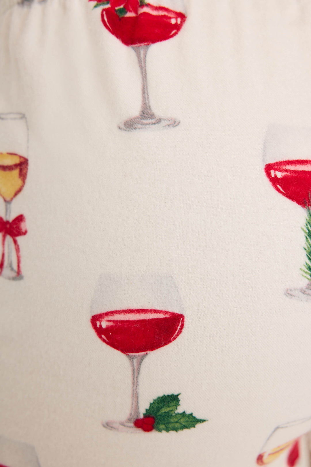 Embrace the cozy season with these stylish ivory flannel shorts from PJ Salvage, featuring a festive holiday wine glass print. Perfect for lounging during the holidays, these shorts are made from soft cotton flannel and are designed for comfort and style.