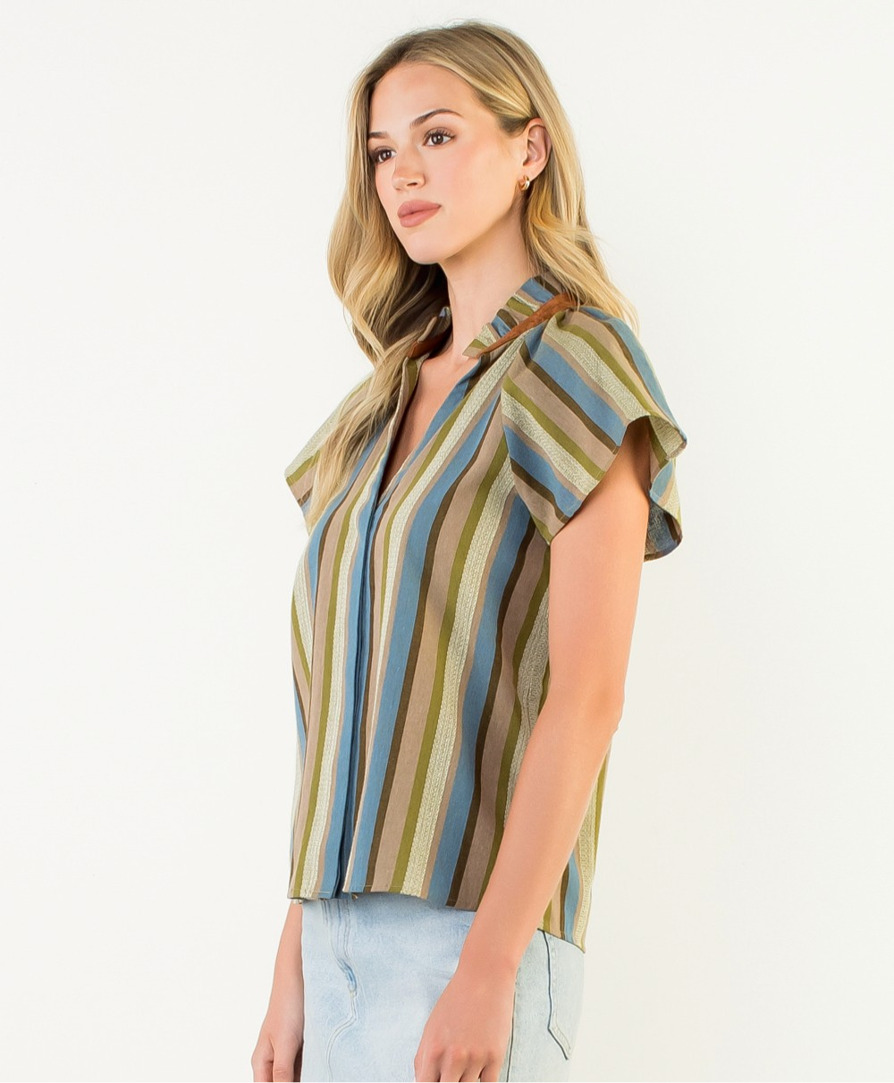 *FINAL SALE* Short Sleeve Striped V Neck Top
