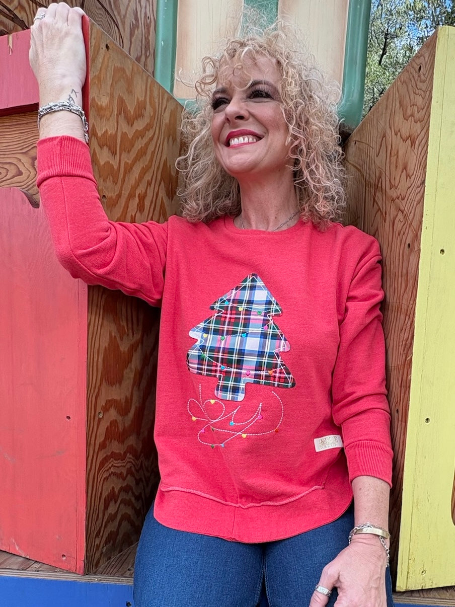 Happy Holiday Trees Embossed Waffle Sweatshirt