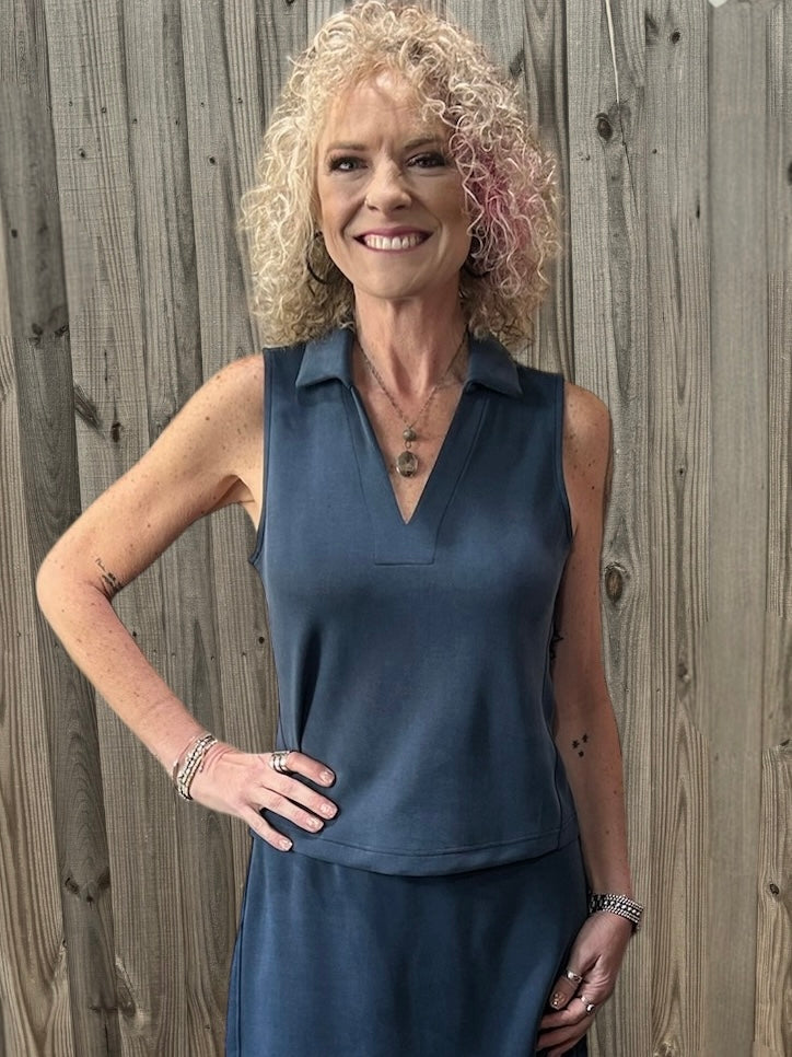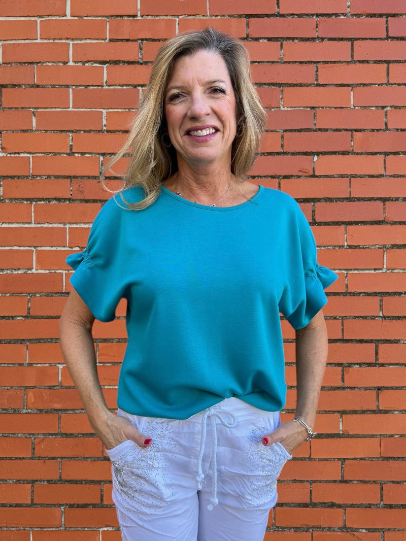 Liverpool Stripe Boat Neck Scallop Hem Sweater