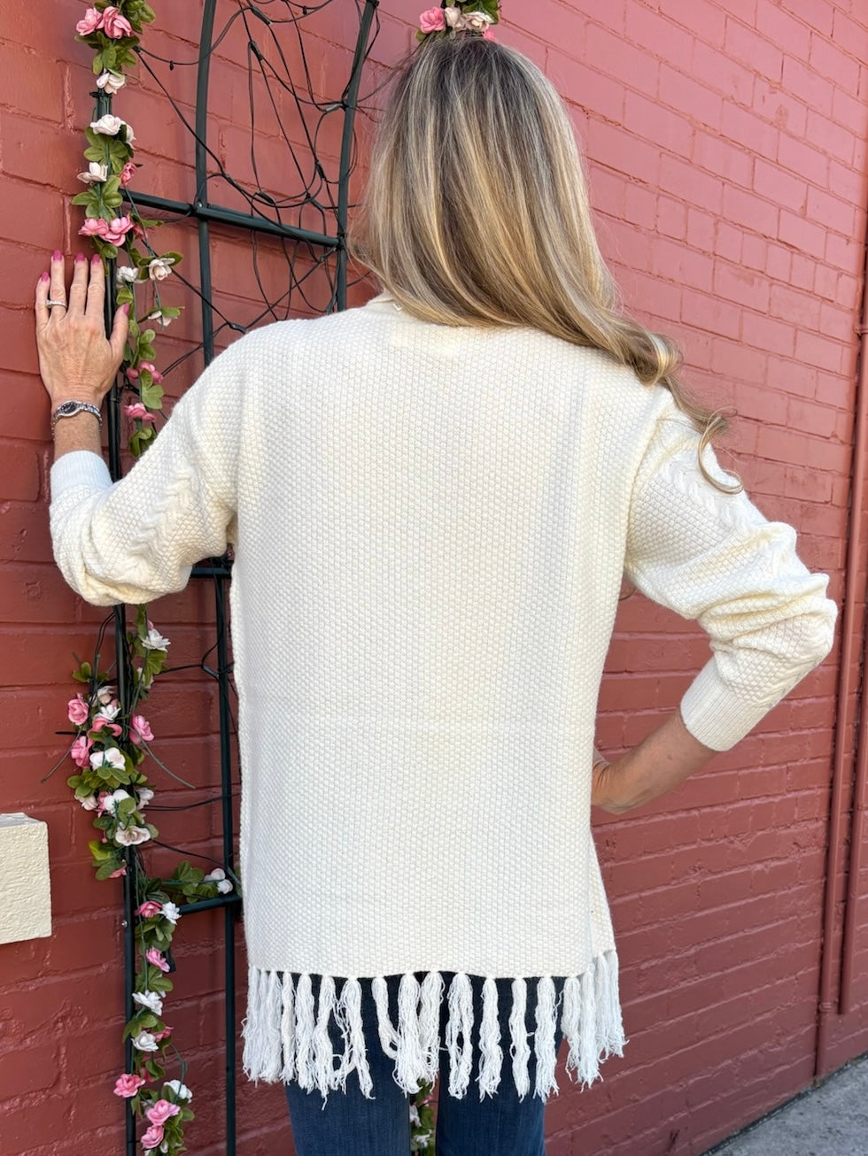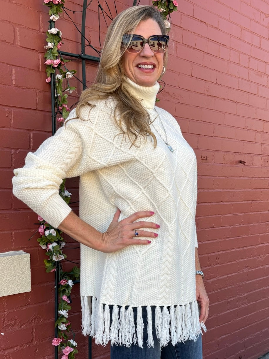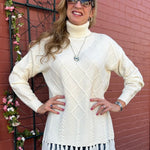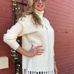 Fringe Hem Pullover Cable Sweater