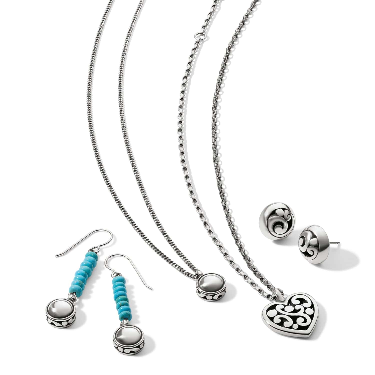 The Brighton Contempo Nuevo Petite Dome Necklace is a sophisticated piece of jewelry inspired by the artistry of Taxco, Mexico. This necklace features iconic swirls influenced by ancient Aztec carvings, providing a timeless yet modern aesthetic.