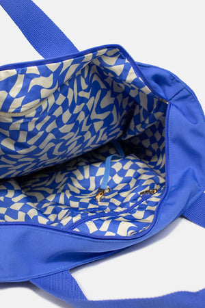 Explore the ultimate fusion of functionality and eco-friendly fashion with our Kind Bag London - Large Carry-All Tote Bag. Expertly crafted from lightweight, recycled RPET fabric (recycled polyester fabric), this tote is designed to withstand daily wear and tear with its water-resistant qualities and durable cotton straps, ensuring comfort and ease even on your busiest days. It boasts a large capacity, making it perfect for everything from office essentials to weekend getaways. It features a secure main zip closure to keep your items safe, complemented by zipped pockets inside for organizing smaller essentials alongside an elastic key hook ensuring your keys are always within reach. Available in four bold colors, each tote is lined with a beautifully patterned RPET fabric, adding an unexpected pop of style inside every bag. Whether you're commuting to work, running errands, or escaping for the weekend, this carry-all tote is your perfect companion, combining spaciousness, security, and sustainability in one chic package.