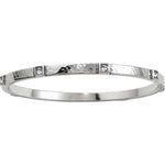 Slender and sleek, this hammered silver bangle shines, punctuated by stations of fine quality crystal in chic square frames. Great for stacking.